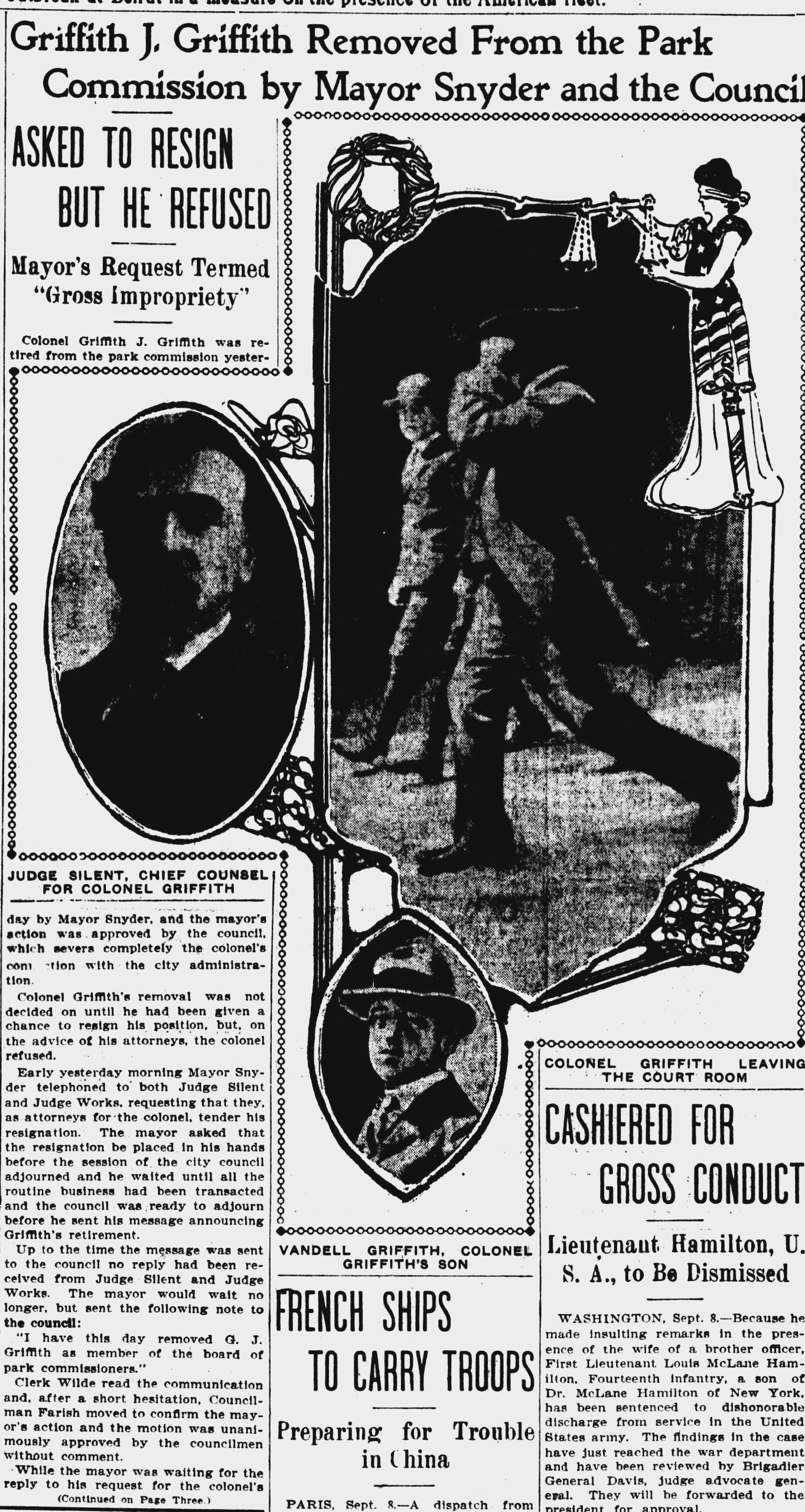 The Express gloated that “public sentiment will heartily approve the action of Mayor Snyder” and noted that since Griffith Park had become “handicapped so signally by its name” the City Council should find a way to rename it. “This city cannot afford to own a park whose title exploits a name which just now is in deserved ill-odor,” it editorialized again on September 10.