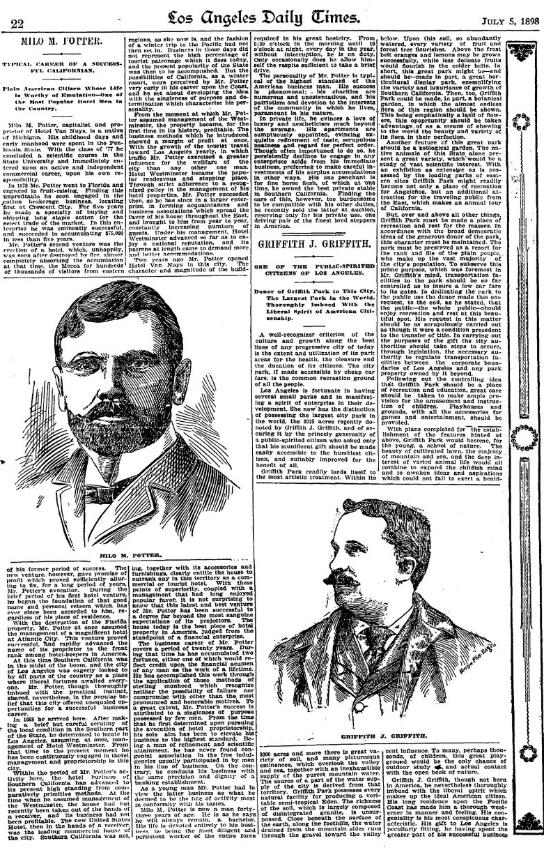 The Times on July 5, 1898, profiled Grif and other notable Angeleno men. Tap the image to download a high-resolution pdf.